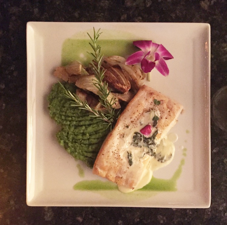 And the sea bass. Served with an English pea puree, which was one of the most interesting and strangely addictive sides ever, and roasted fennel with a tarragon beurre blanc sauce over the fish, it was the perfect summer plate. The fennel complemented the pea puree perfectly and the bass had a complex flavor all its own. Completely fresh, had you blindfolded us and fed us, we would have thought we were eating in Malibu’s fanciest seafood restaurant. And one last time, the pea puree. They could have easily turned into baby food, but Chef did something magical that really took it to another level.